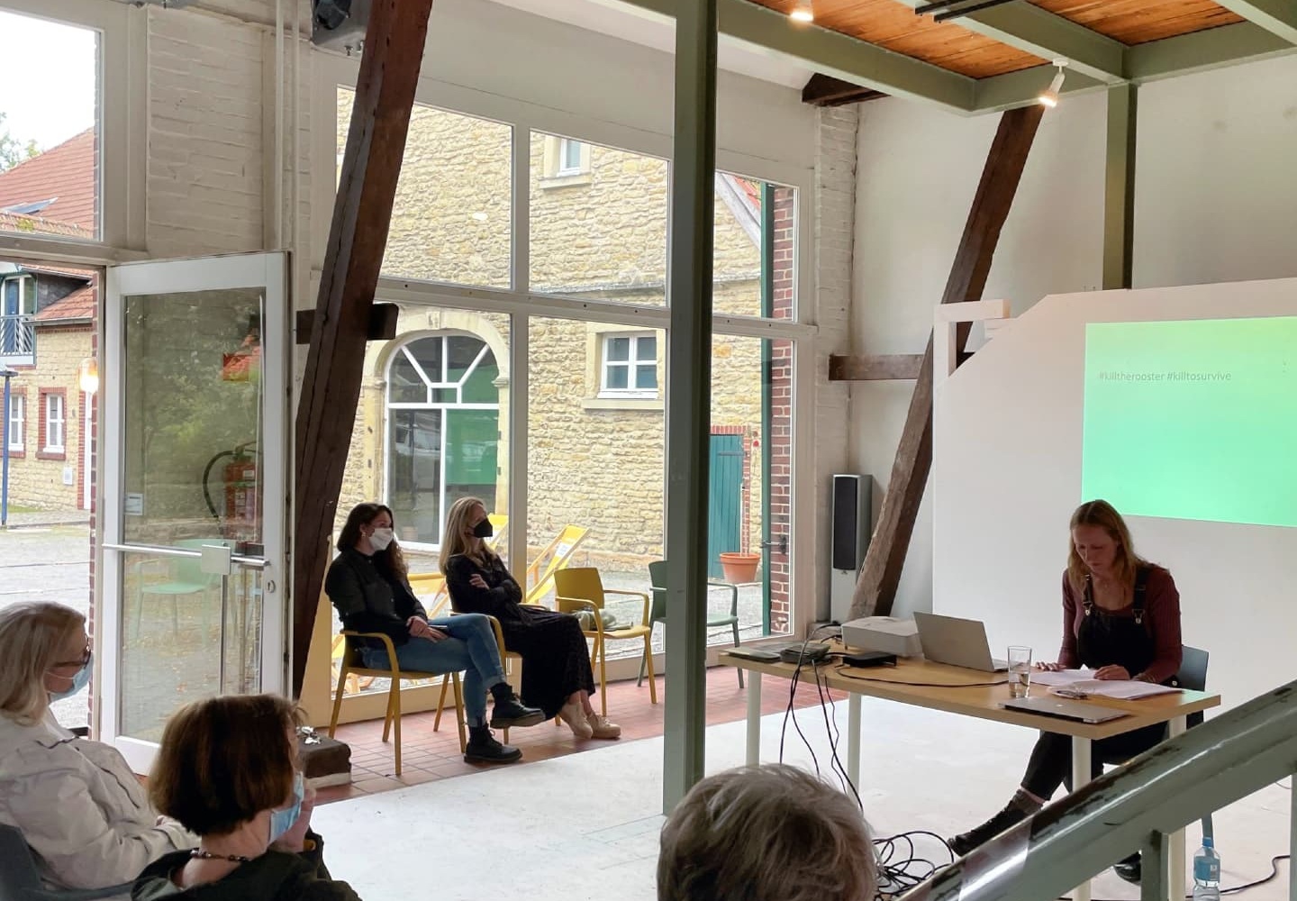 In Schöppingen arbeitete Nina Lörken an ihrem Romanprojekt „Das Paradies ist kein Ort“. Der Episodenroman beleuchtet das Verhältnis des Menschen zu Natur und Spiritualität im digitalisierten und globalisierten Zeitalter. Die Protagonisten suchen das Paradies – in der Exotik ferner Länder, im Wald, im Zoo, im Internet. Philosophische und mythologische Elemente werden mit zeitgenössischen Phänomenen der Internet-Kultur kontrastiert und zeichnen das Bild einer Gegenwart zwischen tantrischen Ritualen und toten Hähnen, Hashtags und Plastikinseln, radioaktiven Papayas und blauen Flamingos.