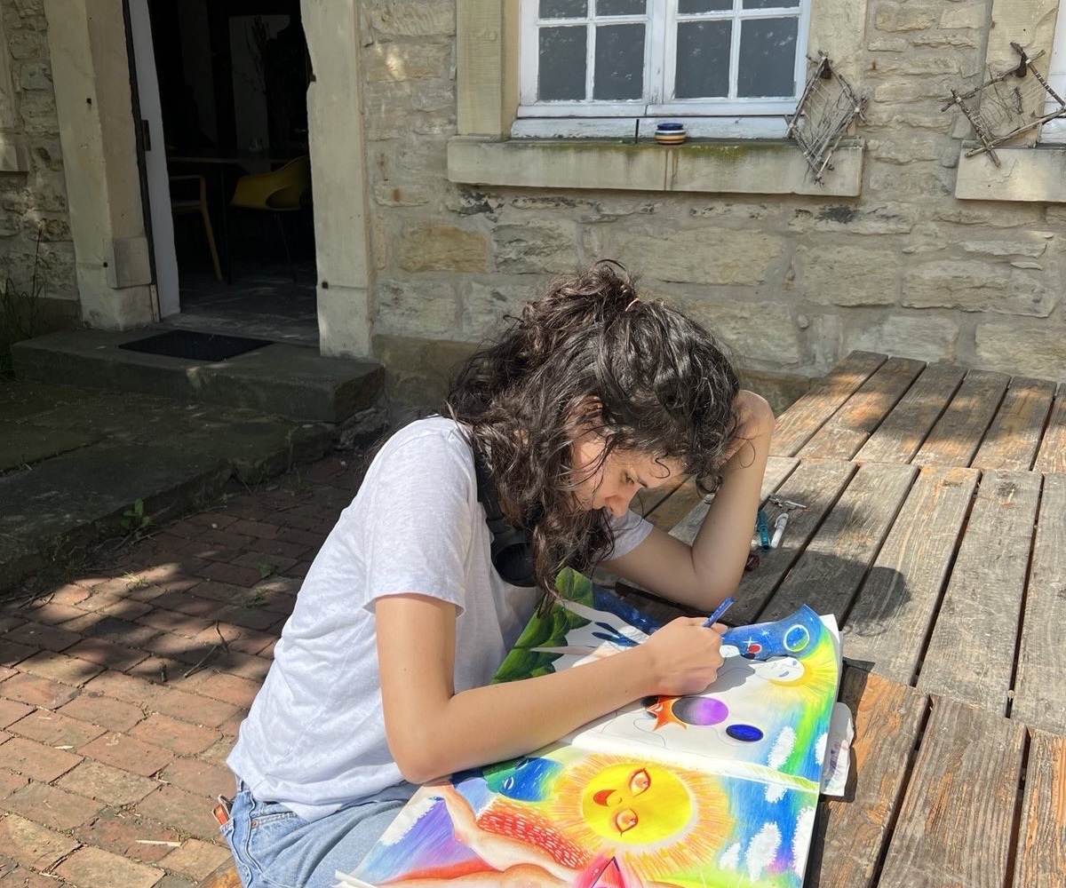 Clara Gott, born in Neuss in 2002, lives and works in Pulheim near Cologne. Clara has been drawing since her early childhood and has developed a diverse body of drawings, which she has recently begun to expand with the media of painting, collage and ceramics. The artist’s works feature a colorful palette and a style influenced by manga and anime. It is only on closer inspection that an exciting contrast to her chosen themes emerges. Her drawings often feature scenarios from hidden worlds with mysterious laboratories, medical experiments and obscure interpersonal relationships, reflecting her keen interest in abandoned places, neurology and dream research.