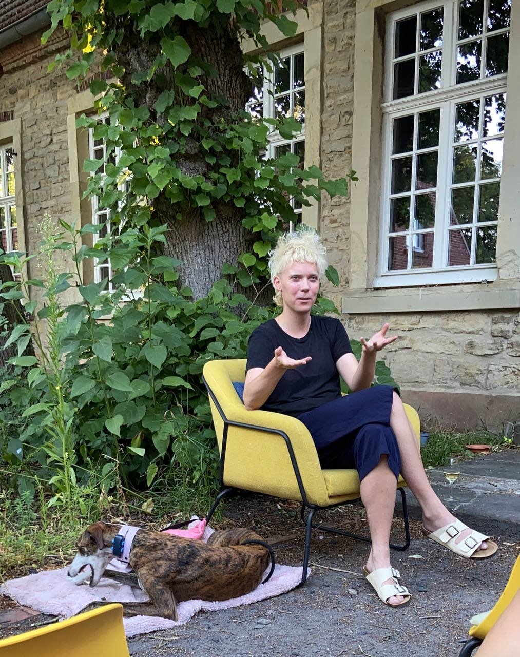 The theme of my time in Schöppingen could be named belonging as it was also the title of collective reading that took place in the final days of my stay. As a group of five authors – Annalee Davis, Muna Gurung, Tamar Noort and Sass Popoli and myself – we approached the subject of belonging from various angles and perspectives. Finally, we ended with an evening in which our words found each other, though at first glance they did not seem to belong together. That made me realize that as a group of people you can come from totally different backgrounds and still find and feel a sense of togetherness. It´s the most wonderful thing about Künstler*innendorf Schöppingen, with the neverending flow of new people and their influences, there are always new aspects affecting your own work. The surroundings where ideal to deal with my own process of belonging, to my community of trans people as well as the art scene. It was also the impulse to incorporate English passages into my own writing project, on the one hand to make them accessible to all fellows present at the final reading, and on the other hand to illustrate how my stay in the Künstler*innendorf has affected my work and me.